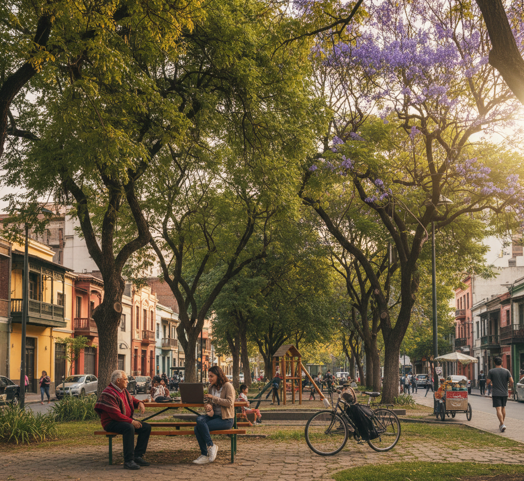 - Sombreado estratégico: Ubicar la vegetación donde más caminamos, protegiendo al peatón del golpe de calor.